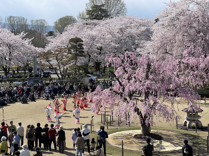 お花見だけでなく、花見流しや茶会、舞や演奏が並ぶのがこの催しの特徴です。