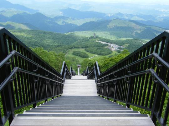 レストハウスから小丸山展望台までは1,445段の階段が続き、これが有名な天空回廊です。