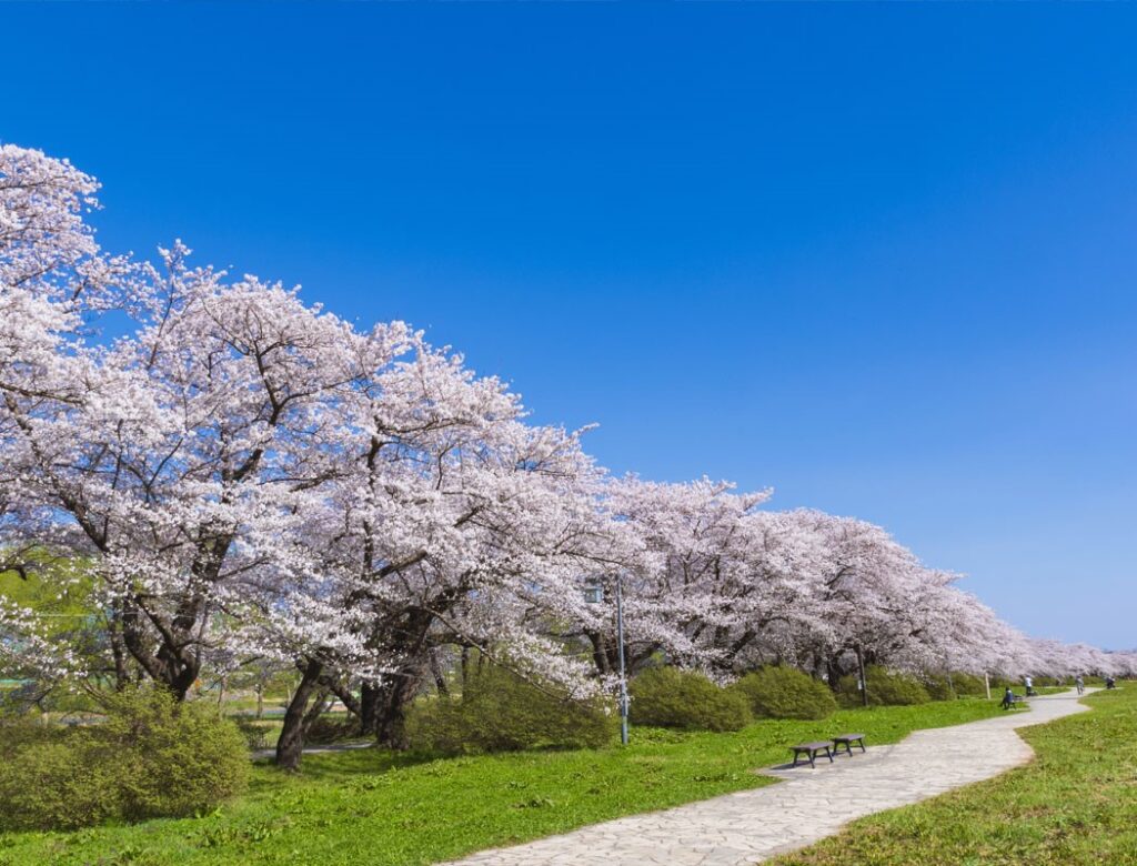 約2kmにわたって続く桜並木に、北上川を泳ぐこいのぼり、観光馬車や夜桜ライトアップまで重なるこの場所は、ただ桜を見るだけでは終わらない特別な体験ができるスポットです。