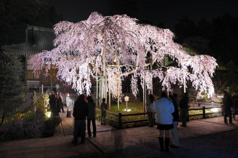 ライトアップの主役は、樹齢370年以上とされる太山寺のしだれ桜です。