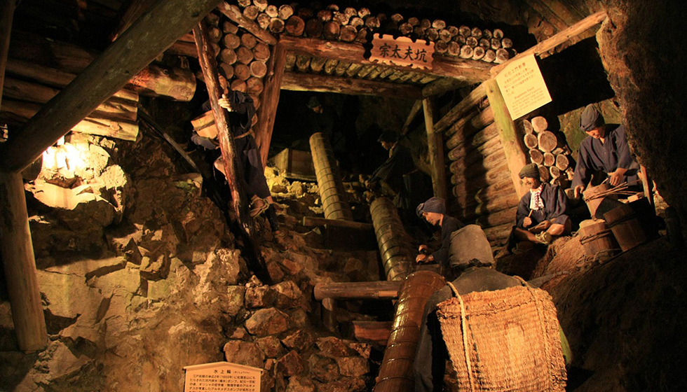 江戸時代の坑道や近代の採掘跡を見学できます。