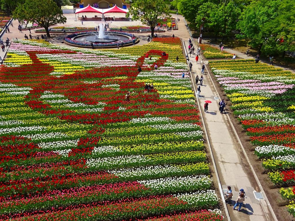 大花壇とチューリップの地上絵