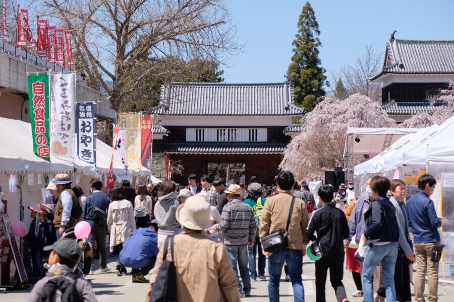 2026年は公式に「たくさんのグルメを用意」と案内されていて、上田ワインデイ、甲冑着用体験、神輿渡御、桜コンサート、上田城太鼓まつり<春の陣>、忍者体験などが予定されています。