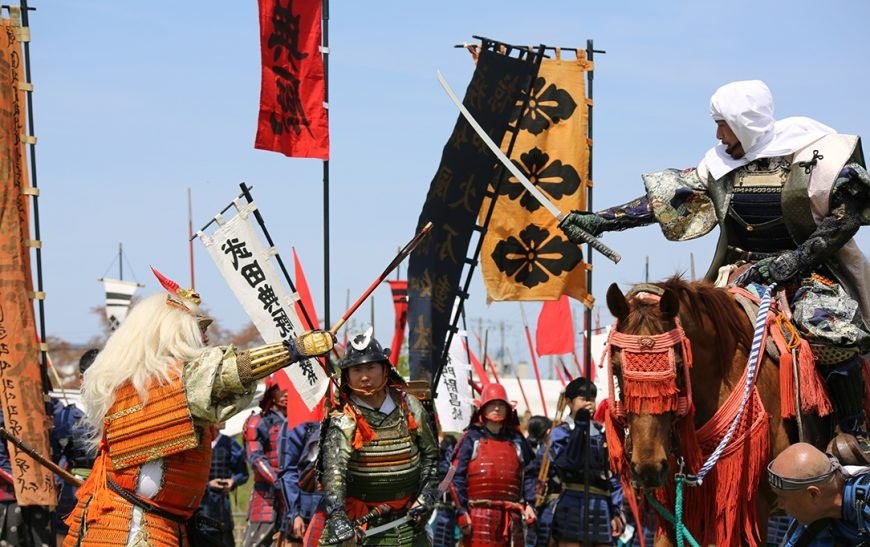 総勢約700名の武将が河川敷を埋め尽くす光景、火縄銃の轟音、一騎打ちの緊張感。