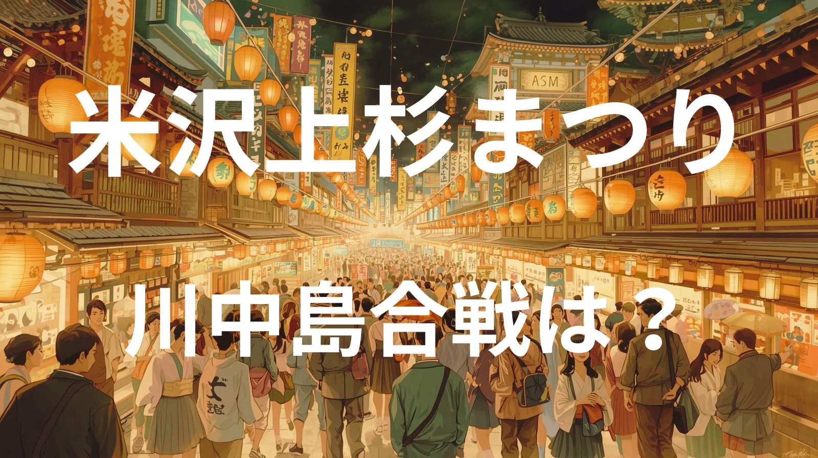 アクセスの目安としては、米沢駅から川中島合戦会場(松川河川敷)まで徒歩約10分程度、上杉神社周辺までは徒歩約30分ほど(あくまで目安)とされています。